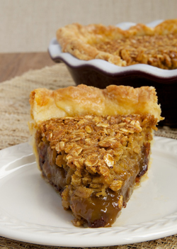 This particular pie falls squarely into the comfort food category. Its filling is gooey and sweet, much like pecan pie. But, instead of nuts, it’s filled with plenty of toasted oats. And, all of that delicious filling sits on top of a layer of rich chocolate ganache. It is so, so good.